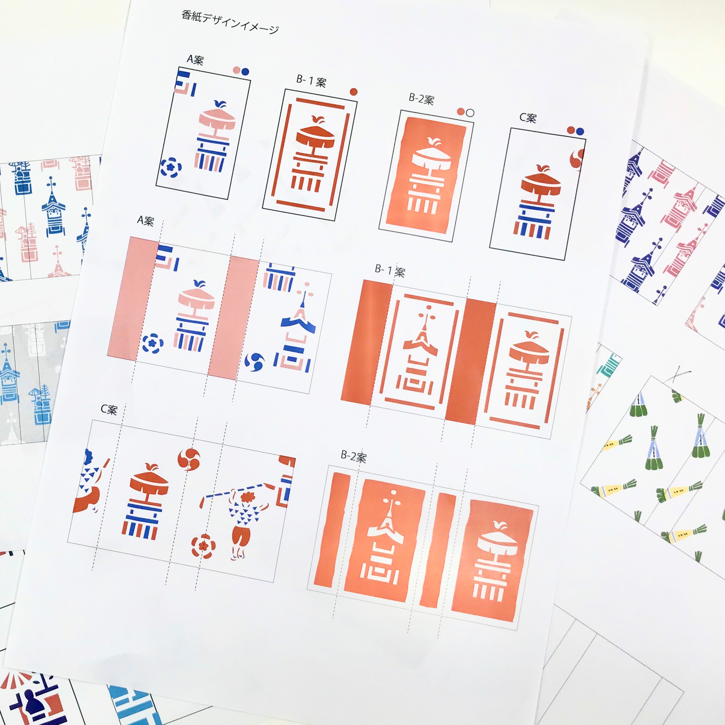 ▼今年の新商品、「香紙」のデザイン。2種類ある本商品も最初は色々なイメージを広げていました。